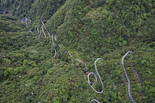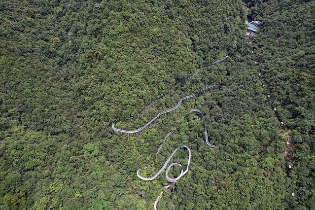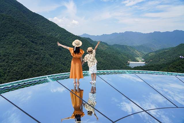 紫金花状悬崖玻璃眺望台,可以一览众山小,顶层的地玻璃据说是世界纪录。