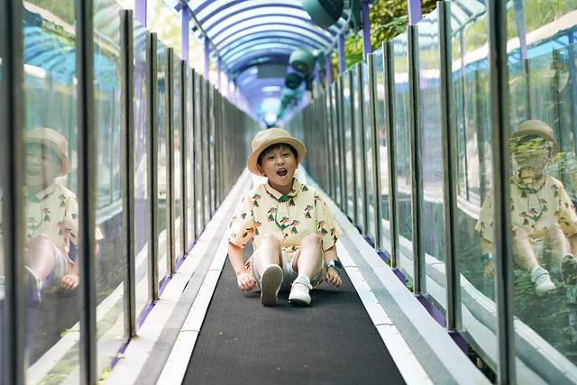 出口处就是秋千和跷跷板等无动力游乐设施,比起两年前多了7D裸眼太空飞船的项目,非常酷炫,坐在飞船上跟着画面揺晃,身临其境的沉浸式体验,好玩又刺激。