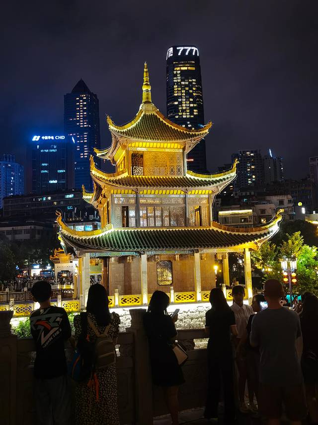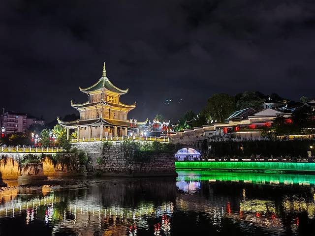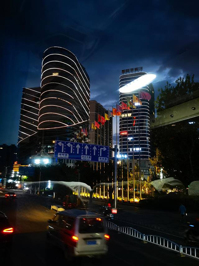 穿过贵阳的的地下通道,贵阳的地下通道是比较多的,目的是为了缓解地面的交通压力,但尽管如此,贵阳还是一座“堵城”。通道是一个步行人员的交通枢纽,但它的指示不是很清楚,可能是外乡人不熟悉吧。绕了一圈,来到翠微巷上的甲秀楼。甲秀楼被称为贵阳市市徽,夜幕下的甲秀楼(具体可百度:甲秀楼),在灯光的装扮下,熠熠生辉,更胜过往。驻足、拍照、欣赏,沿南明河而下,美景尽收眼底。再我们留恋返回时,已是22:00,此时的贵阳街头依旧繁华,车水马龙、人来人往。