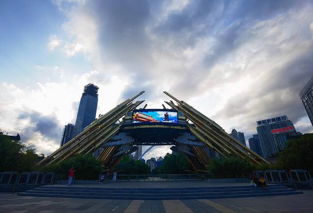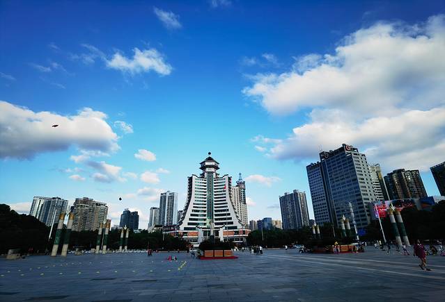 夜幕降临,一行人出发了。由于贵阳跟宁波有一定的时差,18:00的贵阳还是大白天,但很凉爽,只有22℃,所以称为“爽爽贵阳”。步行来到贵阳著名的筑城广场,是贵阳标志性建筑(具体可百度:筑城广场),气势宏伟,彰显了贵阳的历史文化。