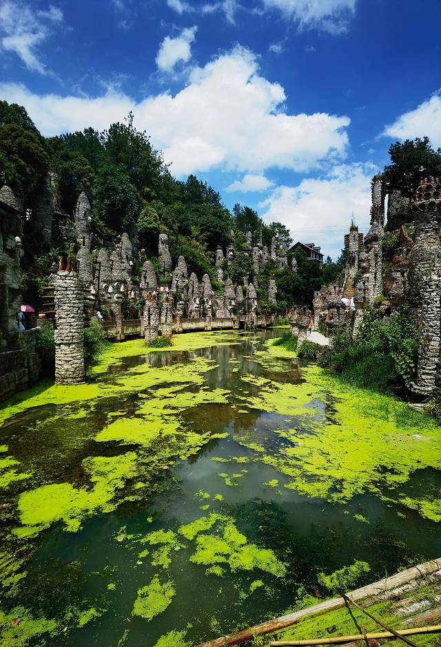 中餐过后,前往花溪夜郎谷(具体可百度:花溪夜郎谷)。除了夜郎谷原有的文化底蕴外,又融入艺术工作者宋培伦的对夜郎谷的理解,也是宋培伦在青山绿水间的杰作,值得一观。