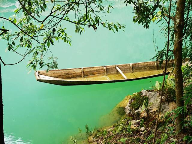 小船悬空于碧绿的水上