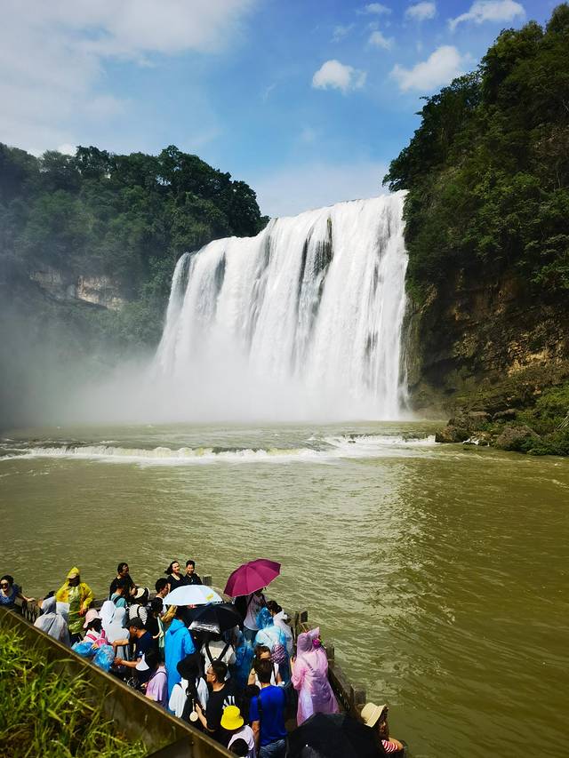 从贵阳出发,2.5小时后到达黄果树瀑布景区,我们一行人游览了陡坡塘、天星桥、黄果树三个地方。陡坡塘瀑布景区的特点在于瀑布的面很广,但落差不高,由于前几天下雨,水量很大,似乎发出轰隆、轰隆的声音,同时又是1986年版西游记的师徒四人牵马过河镜头的取景地,在景区里融入了较多西游记的元素,如师徒四人像,猪八戒,以及取经的九九八十一难等,对于了解《西游记》的我们还是比较亲切的。