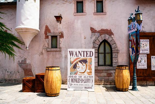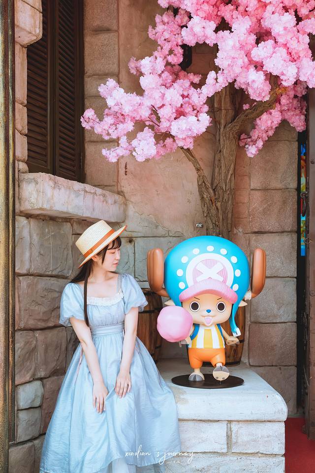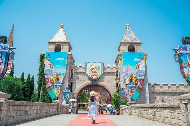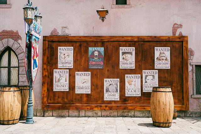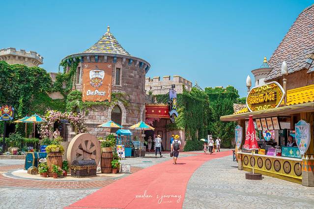 而在城堡区域还有让二次元群体更开心的事情,这里现在有一段海贼王主题街区,里面除了有许多与海贼王有关的元素可以打卡外,还有一家海贼王主题餐厅,餐厅内的出品还不错,可以尝试~