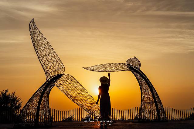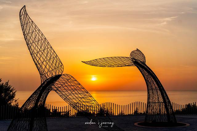 而鲸鱼雕塑在夕阳中形成了美丽的剪影,又是一个白昼的结束,而我们的心是充盈的。