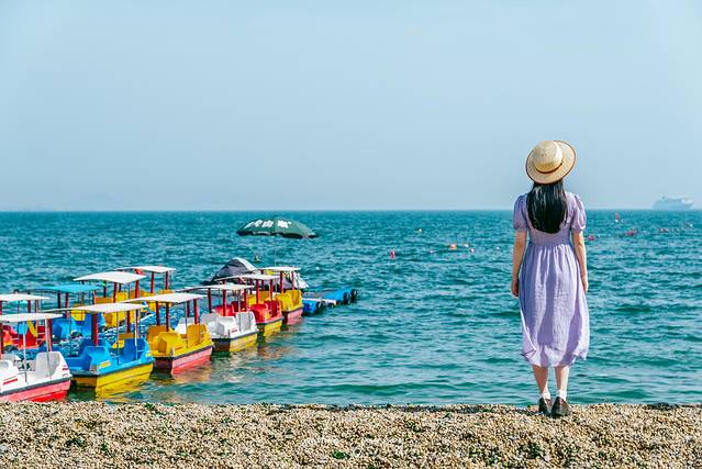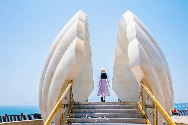 泊石湾附近便是海贝广场,这里有一座代表性的海贝雕塑,人可以走上去拍照,出片还是好看的~