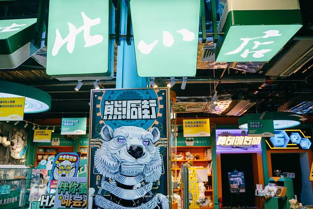 熊洞街共分为三层,一层是巨熊北北的所在地和小吃街、二层是餐厅、文创店、三层是娱乐项目,这里是年轻人的吃喝玩乐聚集地。