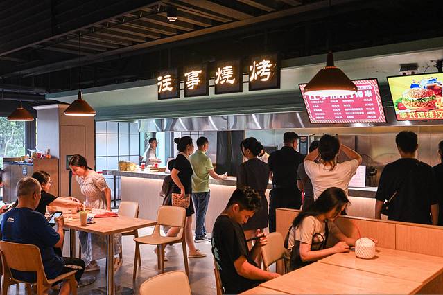 可以去千古情餐厅品尝本地特色精致美味,或者去往事烧烤吃特色烤串,美味多样!连tims咖啡都有!