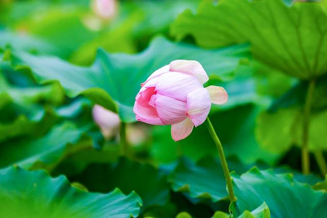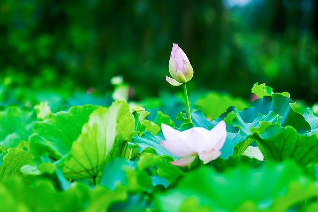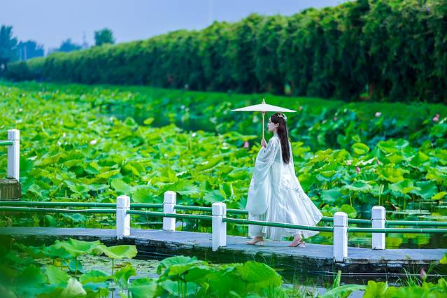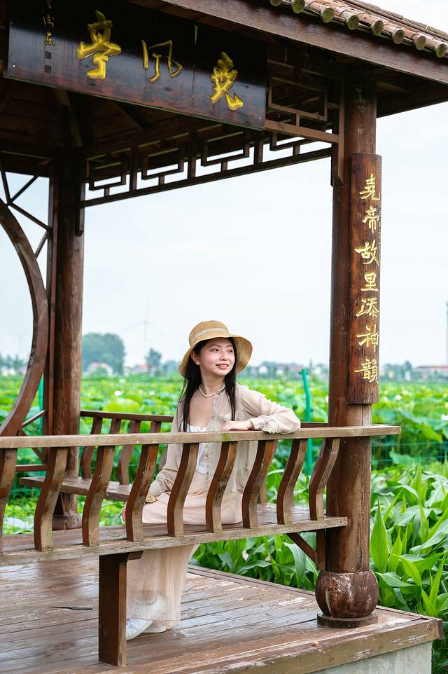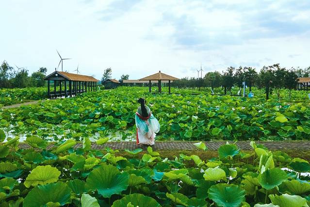 百荷园是荷花荡最大、最美的观赏荷塘,占地150多亩,拥有50余个观赏池,上百种荷花品种在这里绽放,有翩翩起舞的舞妃莲,有款款深情的深情莲,也有迎接贵客的紫气东来莲,各个仪态万千,争奇斗艳。