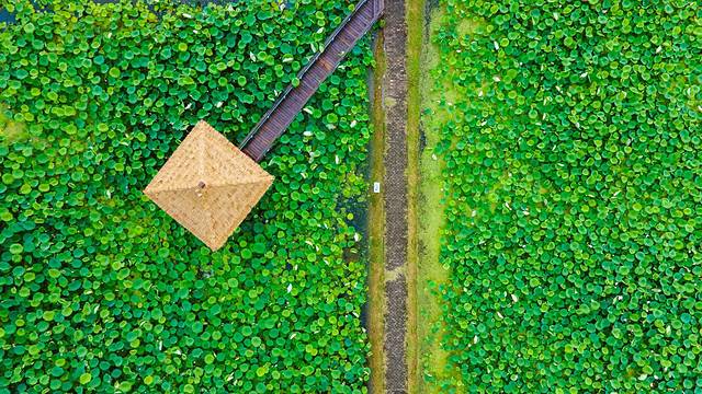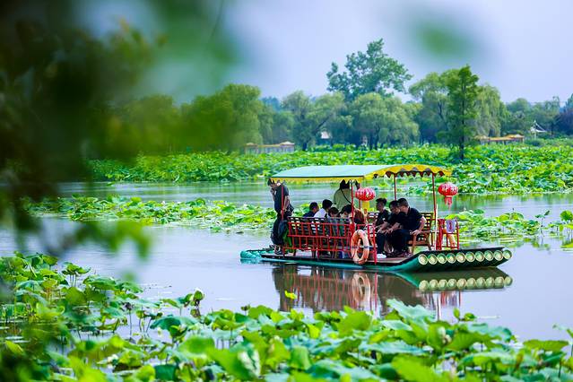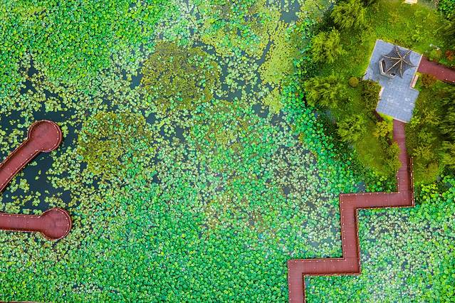 从空中俯瞰荷花荡,大有“接天莲叶无穷碧,映日荷花别样红”的感觉,风景美不胜收。景区内拥有荷花仙子广场、紫藤长廊、百荷园、碧荷亭、水漾年华等景点,其中荷花仙子广场与百荷园是其精华所在,尤其是夏日时,赏荷的绝佳去处,可泛舟荷花池也可在岸边欣赏。