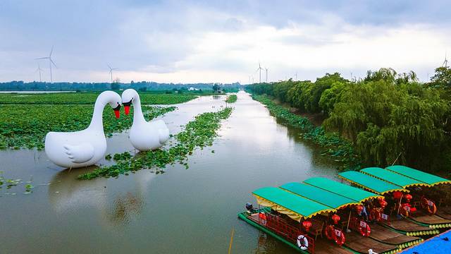 荷花荡景区坐落在美丽的高邮湖畔,景区三面环湖相拥,生态环境秀美,为国家4A级旅游景区、国家级农业生态风景区。每到夏季,荷花荡就呈现一副风卷荷叶、绿坡阵阵、荷花盛开的景象,是游人眼中的神仙仙境,摄影师眼中的美丽风光。