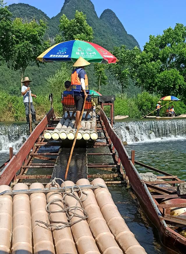 我们来的早(8点到的旧县城码头)也坐上竹筏了(180一筏)