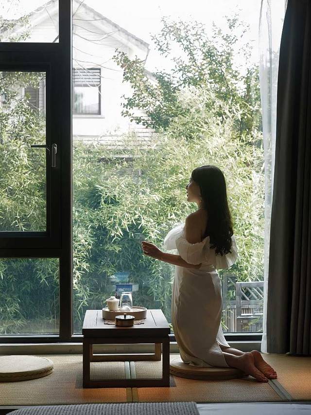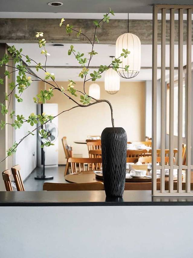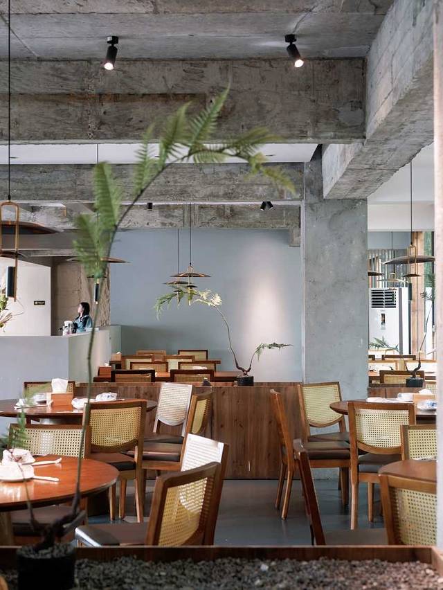 环境雅致,颇有点混搭风,现代新中式搭配工业风,靠窗的位置可以看到绝美风景或者竹林
