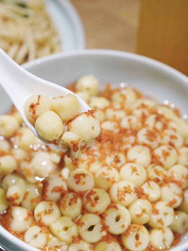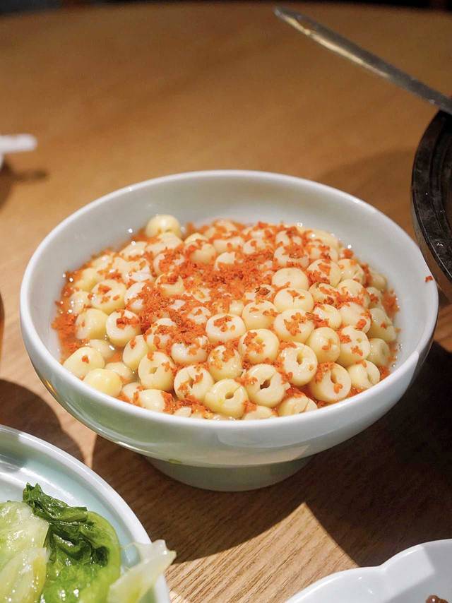 桂花白莲:吃完麻辣的大红袍茶鱼,太适合点上一份桂花白莲做饭后甜点啦!莲子软糯香甜,桂花的清香让这道菜好吃加倍!关键是分量真的太足了!