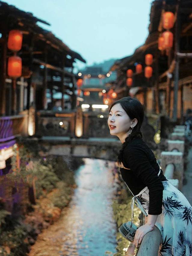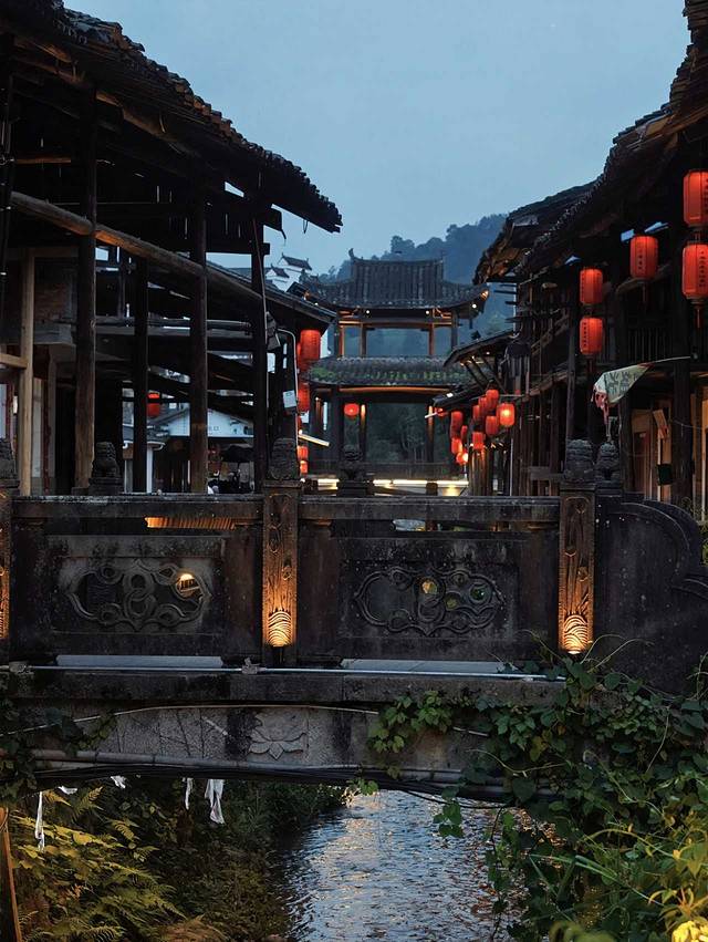 蓝调时分,当大红灯笼亮起,颇具氛围感!