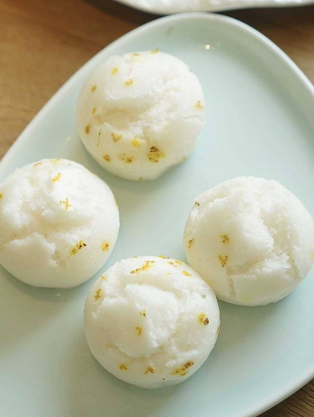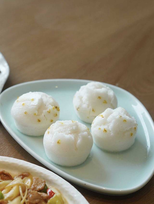 桂花糕:喜欢桂花的朋友一定别错过这个!咬下去满嘴桂花的清香,吃起来QQ弹弹的,不想吃米饭等主食的朋友,一定要点它!