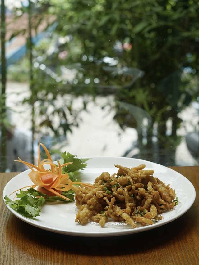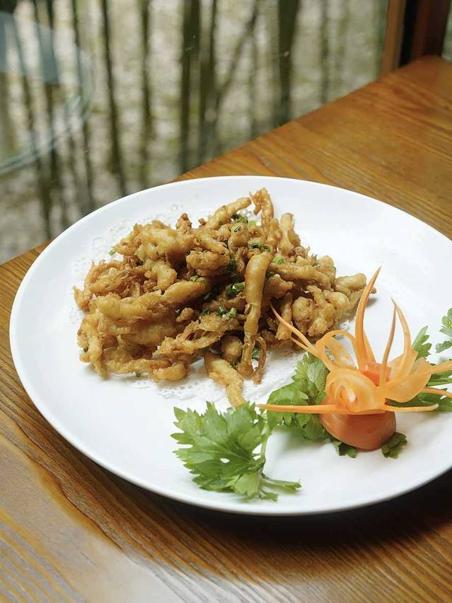 椒盐大王菇:来 武夷山 解锁了不少没吃过的菇,第一次吃大王菇,又香又脆,蘸上甜辣酱更美味