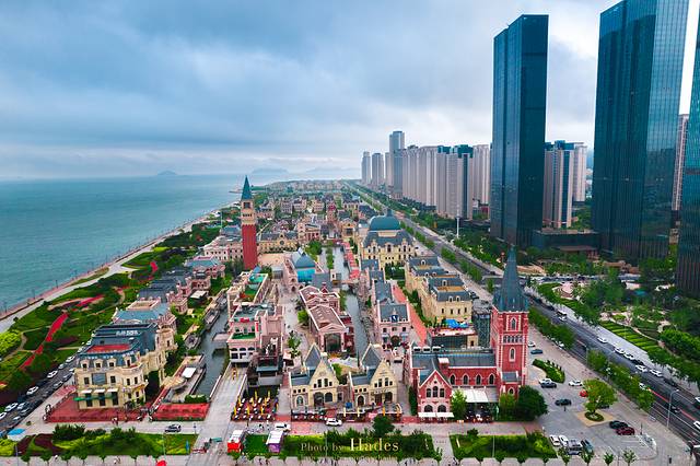 能想到吗,大连的海边,还有座威尼斯水城!一条长4公里的海水人工运河,连接起两岸200余座欧式城堡建筑。这里不需要门票,入口完全开放,尤其傍晚黄昏,灯光亮起,景色更加迷人。河道内,细长的贡多拉船穿行往来,异域浪漫。