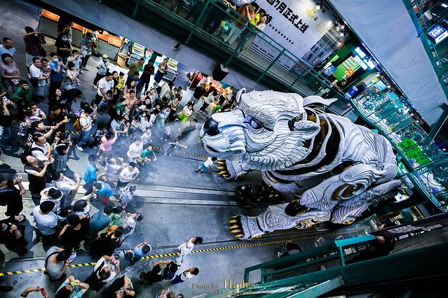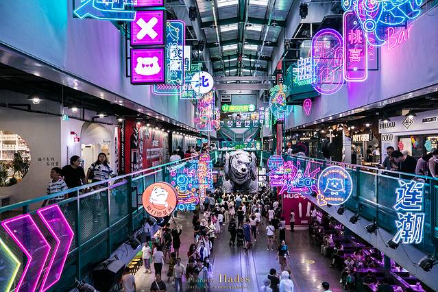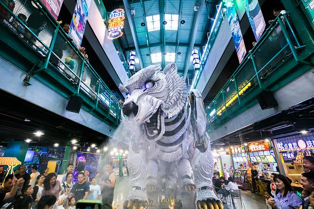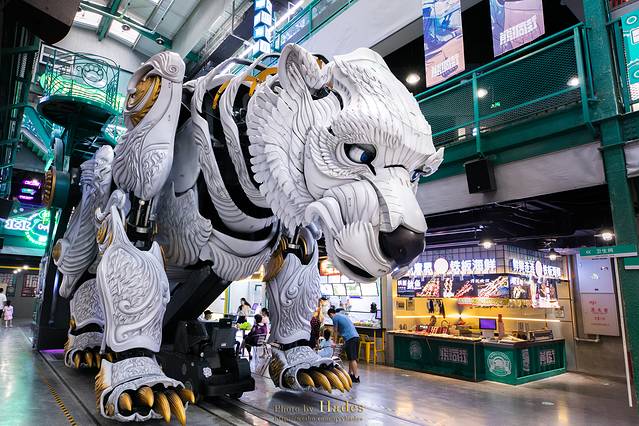 平时北北呆萌可爱,每当表演时,双眼放出蓝光,喷雾嘶吼,霸气非常!一到三层,还有很多潮玩店铺和特色小吃,拍照打卡吃吃喝喝超级哈皮!