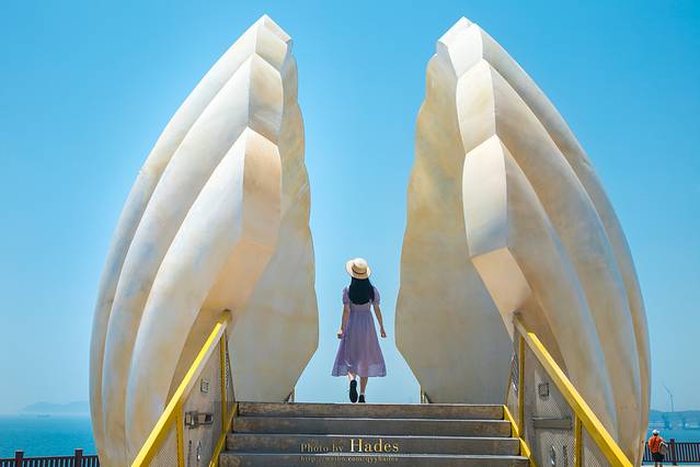 红星海对岸便是海贝广场¬。海贝广场处于泊石湾海滨浴场起始点的上方,这里居高临下,是一览泊石湾海滨浴场的最佳位置。去泊石湾海滨浴场之时,可以现在海贝广场打卡一番。