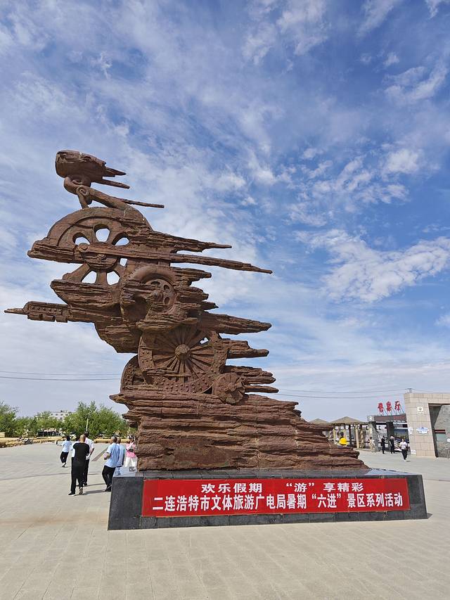 二连浩特地标。两只舌吻的恐龙