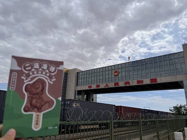 文创雪糕和国门合影,运气不错有遇到火车经过哦