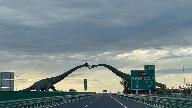 傍晚到二连浩特啦,一路风景美如画,这一段领略了什么叫苍茫大地,真正的一望无际。从赛汗塔拉到二连浩特这一段高速没有收费,收费站无人,不知为何。