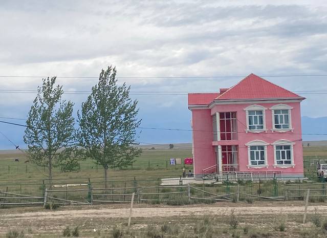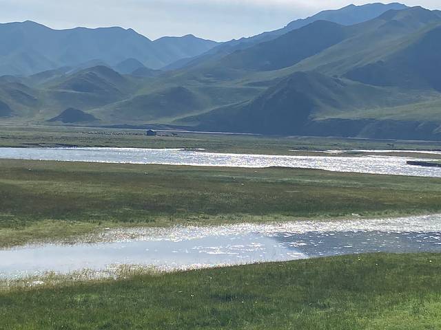 傍晚到达西台双色湖。云层太厚,看不出路两边湖的颜色不一样,都是普通浅蓝。