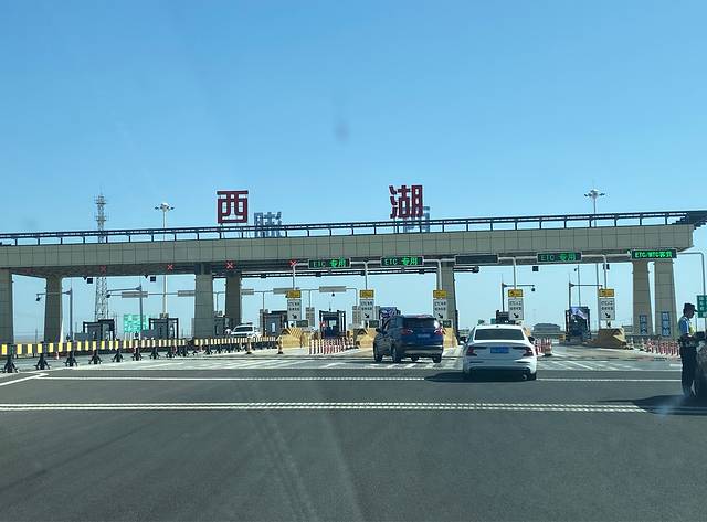 九点多从敦煌出发,前往大海道。途径西湖收费站。