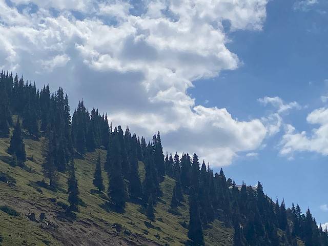 从赛里木湖出来,几公里就到了果子沟景区。