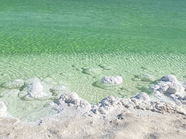湖水清澈,可见盐底。