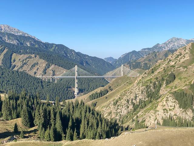 从第三个观景台看果子沟大桥,并不觉得高;后面路过第四个观景台,可以看到桥下公路和高耸的桥梁。