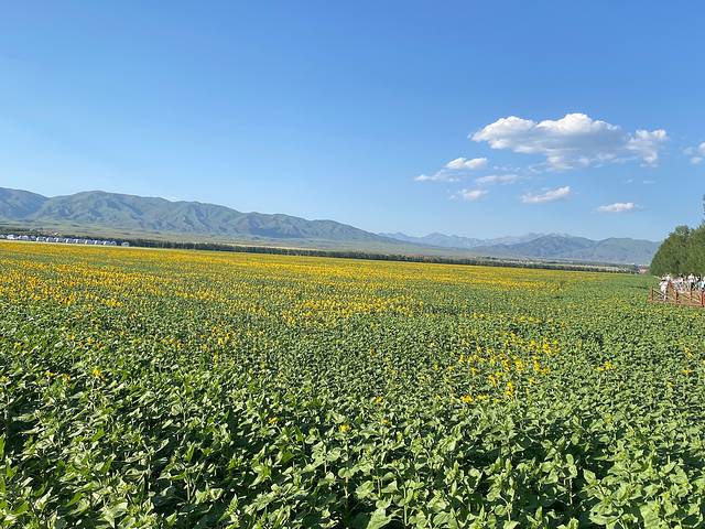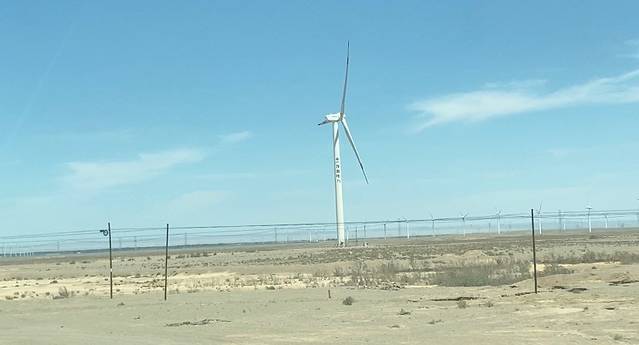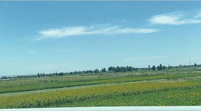 公路旁大部分土地都是荒地,这一片种了向日葵。路过瓜州,瓜州是草圣张芝的故乡。