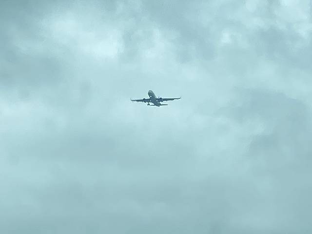 刚出城,高速公路堵车。拍到正在降落的飞机。