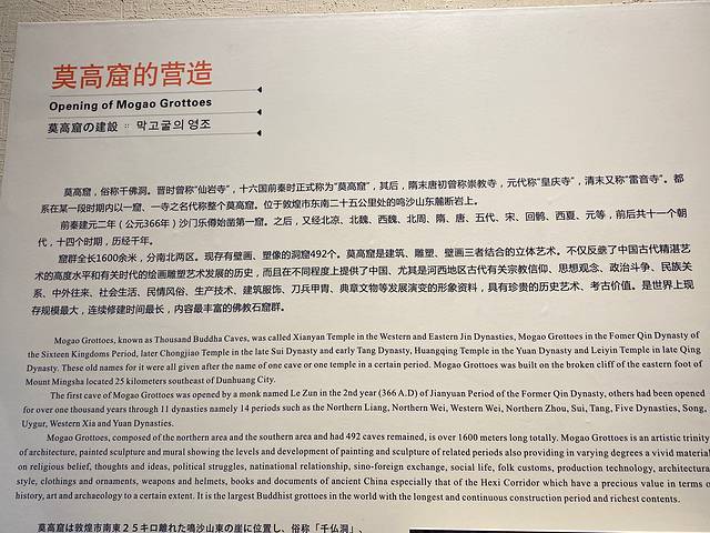 博物馆有三层,螺旋上升结构。对敦煌莫高窟有详细介绍。