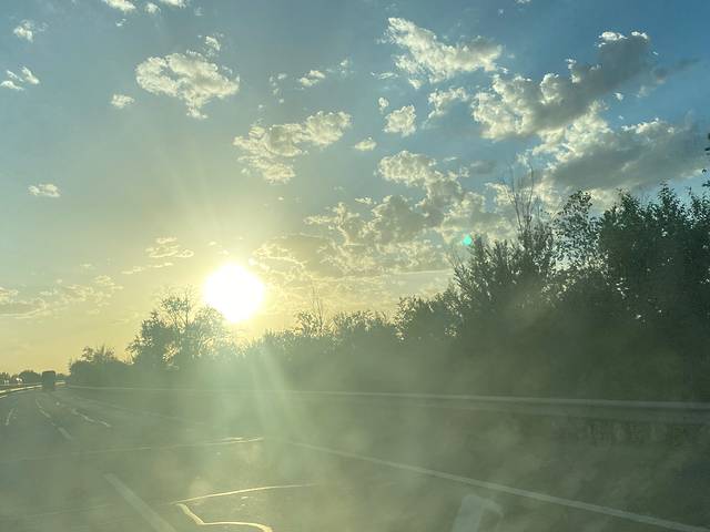 傍晚八点的太阳好刺眼,太阳下山比家乡更晚。
