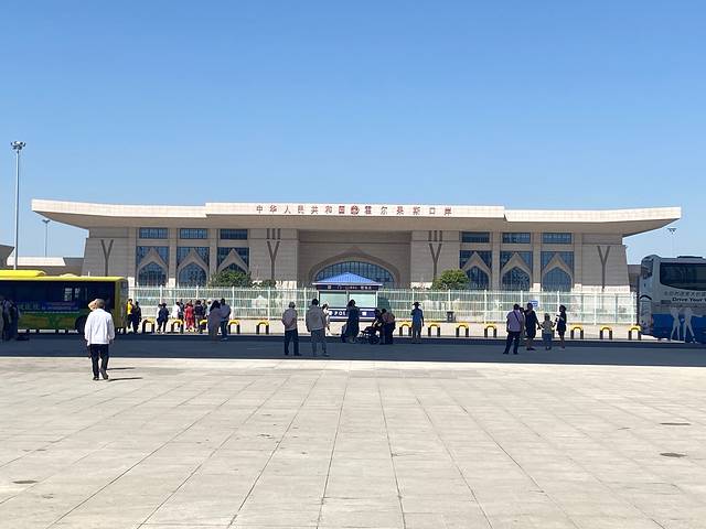 早上九点的温度只有11度,出了太阳才敢打开车门。出发去红其拉甫口岸,路过瓦汗走廊。一直是上坡路,海拔达到4200米。到了距离红其拉甫边境口岸3公里的地方,被警察拦下,原来要乘坐专门的区间车才能进入。