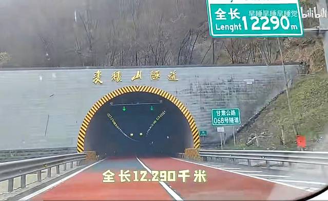 路过麦积山隧道,全国排名第八长。全国前十名的隧道,秦岭终南山隧道排名第一。