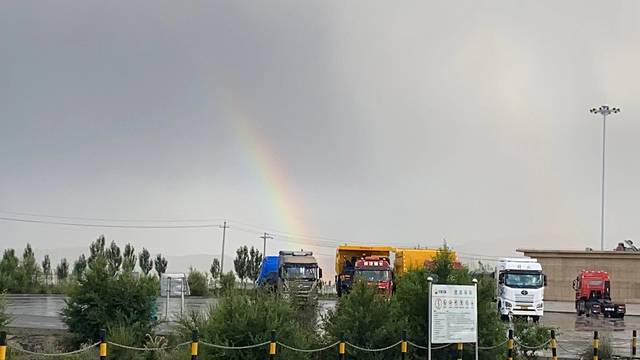 在服务区遇到下雨,拍到了彩虹。果真是风景在路上。