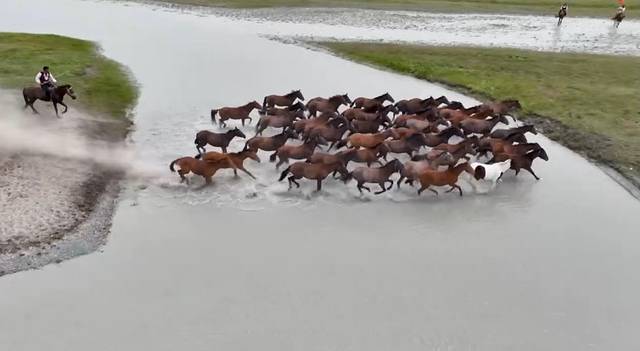 昨天路过昭苏湿地公园,不打算进来。晚上看了看攻略,还是决定过来用无人机拍下天马浴河的场面。