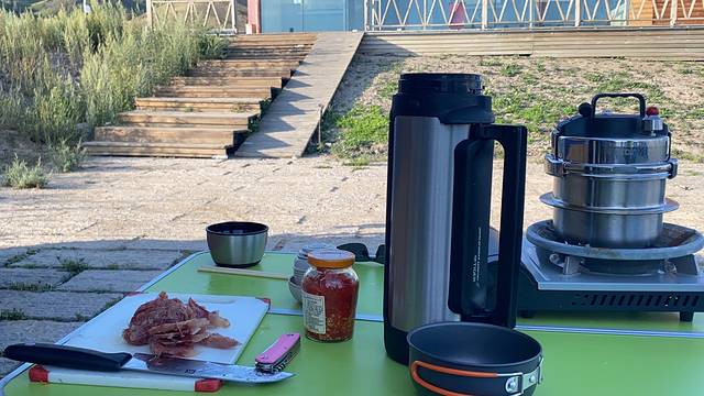 过了北门,选了个露营地休息,烧茶、做饭、泡茶。