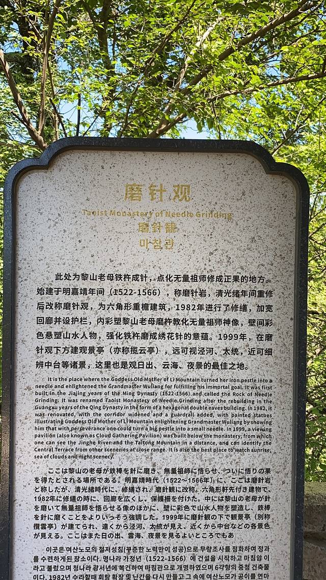 黎山老母铁杵成针,点化无量祖师修道。
