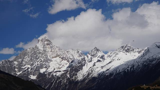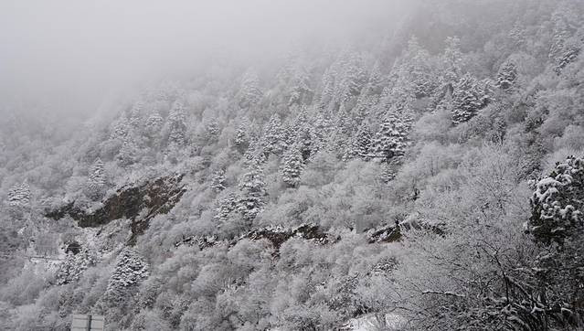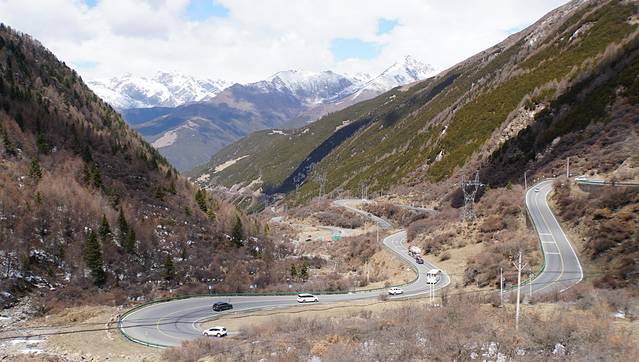 2023中线之旅第三天(4月7日),行程215公里,夜宿小金县。离开都江堰30多公里,下高速正式进入了川藏中线,这一段叫中国的熊猫大道,可以愉快踩油门有了驾驶的乐趣!熊猫大道其实不大,仅够两车擦肩而过而已,路窄弯大,沿着深谷穿行,路两边到处是修路开挖或坍塌的绝壁,像一幅幅浓墨重彩的壁画,讲述着一段遥远的故事。翻越巴朗山时,漫山遍野的积雪让人兴奋,沿途都是不断停车拍照的游人,翻过大雾弥漫的山顶,又阳光明媚。在四姑娘山的观景台,用了很长时间和极大的耐心,才等来云开雾散,看到了深藏在云雾里的,高佻妖娆的幺妹峰的真容!四座山峰依序排开,圣洁而飘逸!小金县和所有经过的乡镇一样风夸张的大,地域狭窄,一层在公路边临街,四五层向后开门,又在路边临街,这种状态不是亲眼所见,难已想象!