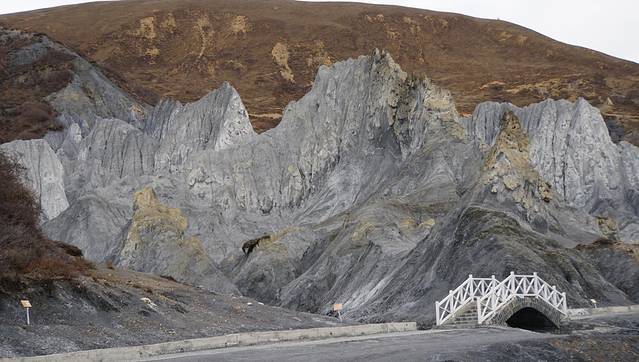 中线之旅第四天(4月8日),行程246公里,夜宿道孚县。早上离开毛主席长征时曾经到达的小金县,沿熊猫大道继续西行,不久修路堵车,一直到十二点多才放行,堵在路上的人们焦躁不安,争先恐后,互不相让,又造成人为的堵车。墨石公园没有网友们晒的漂亮,大概是缺少阳光,所以色彩泛白没有生机。沿途的草场还是一片枯黄,缺少生机,但有一种辽阔高远,悲壮不屈的气势!