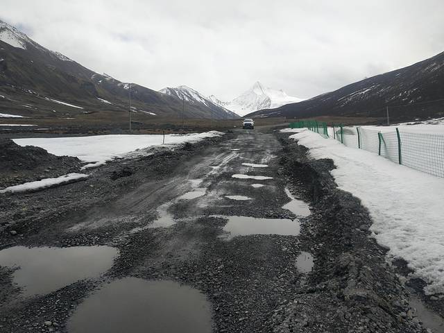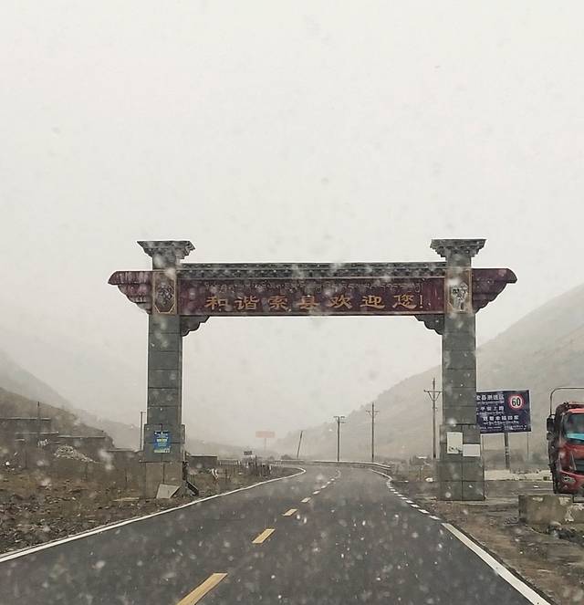 2023中线之旅第十八天(4月22日),行程439公里,夜宿索县。早上起来昨晚小雪,停车场上所有的师傅都在发动车子除雪,有的甚至无法启动,沿路一直是雨雪相伴,持别是翻越4900米的江古拉山时,知道了什么是鹅毛大雪,漫天飞舞,铺天盖地,没完没了地笼罩着车子,视线极差,还好遇到一辆警车,咬紧牙,踏住油门一直紧跟着,在烂如泥潭的路上狂颠乱舞,就怕被困在山顶。从海拨4700米的班戈县来到了海拨3800米的索县,身体像减少不少的负担,感觉心情轻松,空气新艳,眼睛也清亮不少