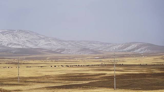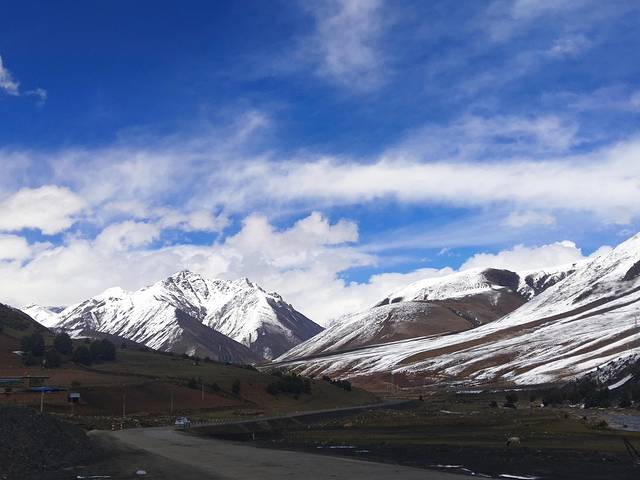 2023中线之旅第七天(4月11日),行程436公里,过察雅县夜宿大雪纷飞的洛隆县。早起,贡觉昨夜轻雪,四周的山顶有程度不同的积雪,沿着原预计的川藏中线西行,一路翻过三座4200米以上的大山,山顶积雪厚重,除正在通行的公路,漫山遍野的雪在阳光下晃眼。翻过每一座山顶更是大片大片的秋色草场,公路修筑的平坦笔直,车行其间远处雪山延绵相伴,近外牛羊成群,高处不时阳光放牧着白云,一片生机盎然!藏区的民居回归古朴自然,少了艳丽炫目,多了一些随意和闲适。