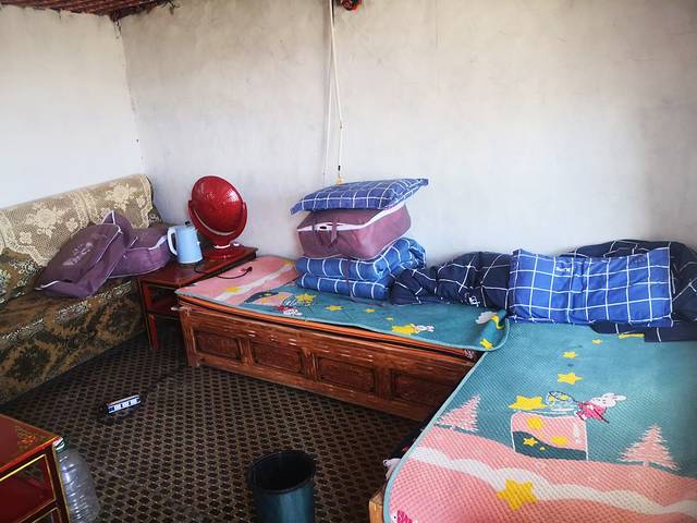 帕江乡的宾馆,有两间房八张床,没有窗帘,每人50元,一床厚重的深色被子加毛毯,水是用拖拉机拉来的旧瓶装水,主人交待没有厕所,随便那里都可以解,我出门找了一转,整个乡没有一个公共厕所,我们的房前屋后到处是随地大小便的印迹。