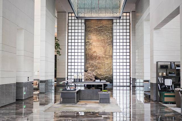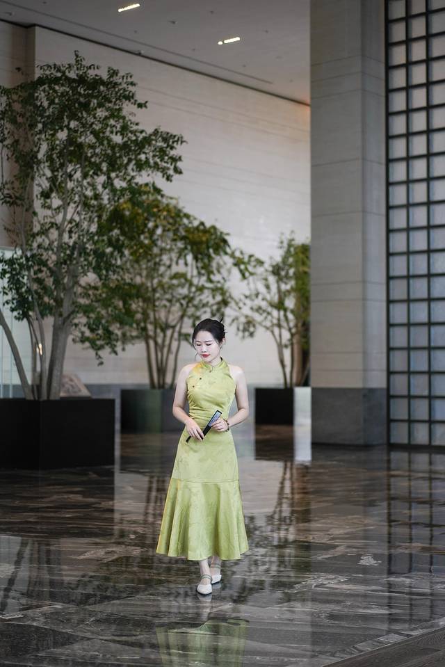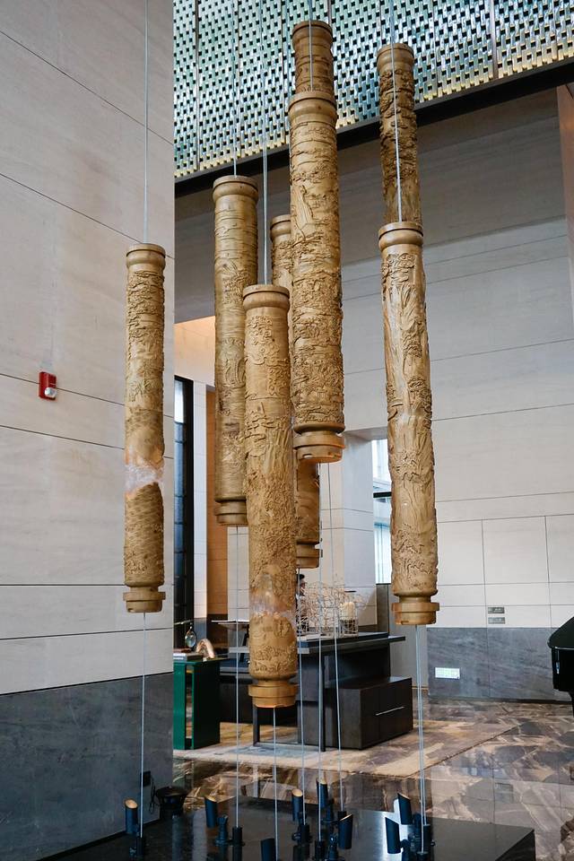 酒店内随不同空间而不同的木雕及艺术摆件,跟酒店环境巧妙融合,每一处细节都能感受到优雅别致的格调和优雅温润气质,以精致的设计细节致敬岭南文化。穿着中式元素服装在酒店里毫无违和感,宛如身处在雅致又高级的中式庭院。