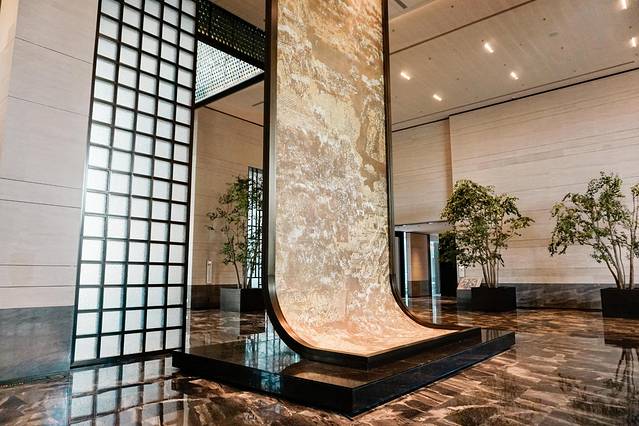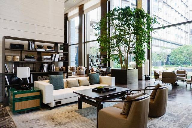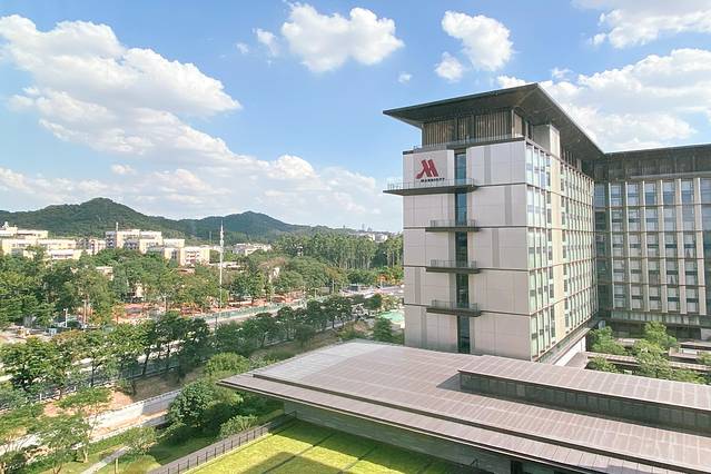 我们入住的是万豪酒店,很喜欢酒店大堂,高挑的空间旷达舒适,现代设计风格与绿植的精巧布局组合,运用白墙、黑瓦、彩玻、木雕等岭南元素,共同构筑出历史与现代感完美融合的空间。