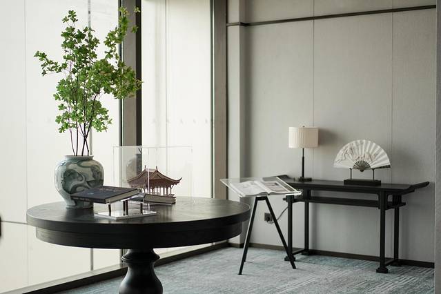 酒店随处可见艺术品,楼梯口、转角间,那些艺术品会不经意出现在眼前,给人以惊喜。陈列的或是雕刻艺术摆件或是中式艺术品或是书籍盆景,每一处精致的细节都让人体会到岭南文化。